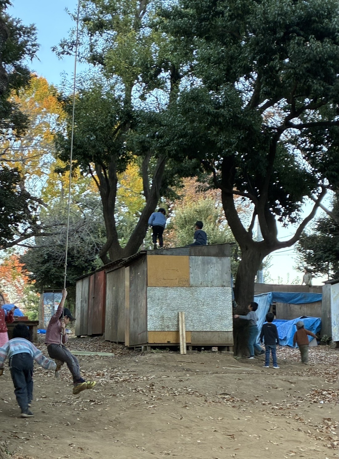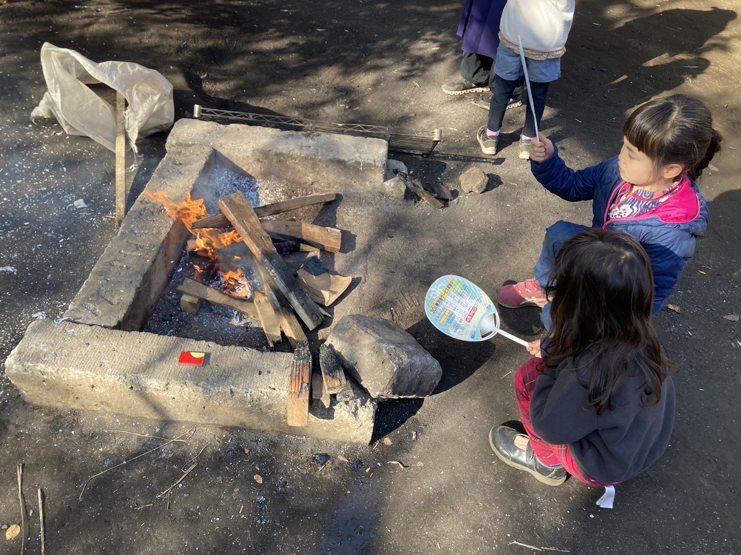 羽根木プレーパークでは、焚き火遊びが真っ盛り🔥焼き芋、椎の実、マシュマロ、べっこうあめ、お菓子のポテチやグミを焼いてみる子も!焚き火で焼くと美味しくなるものを探してみよう〜♪