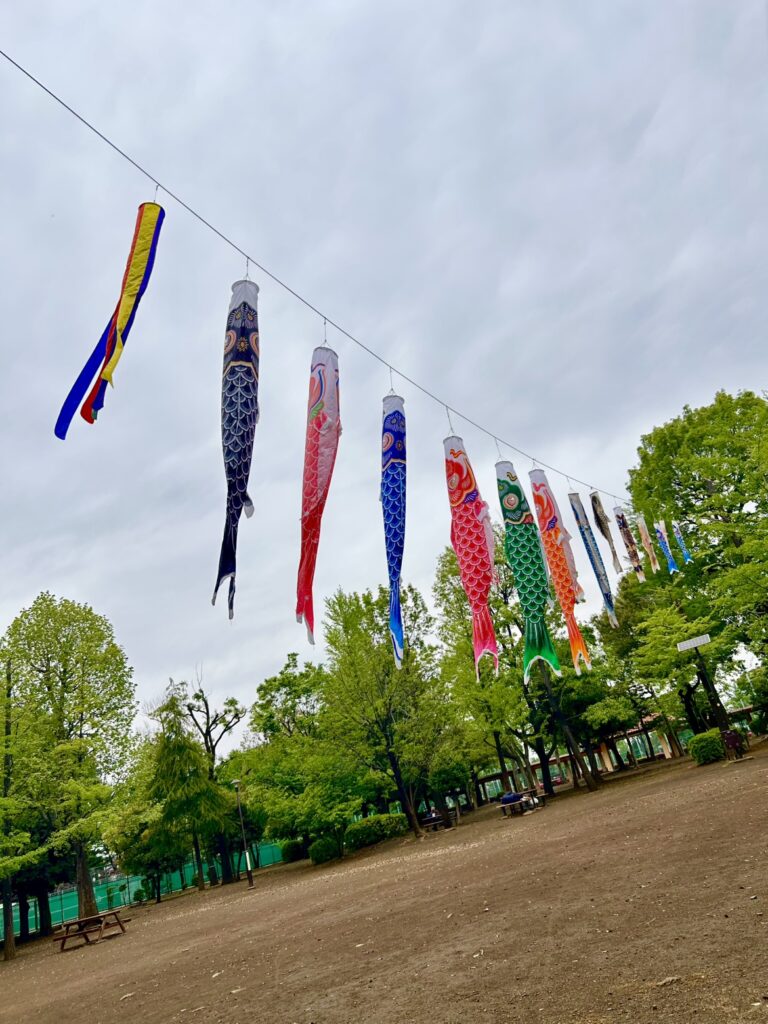プレーパークの隣の広場では、鯉のぼりが風になびかれて5月らしい光景が見られます。気持ちのいいこの季節にぜひプレーパークへ来ませんか?!