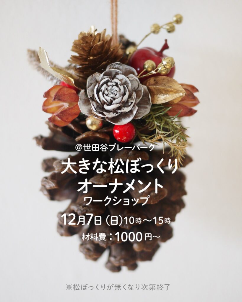 昨年も大好評だった、大きな松ぼっくりのオーナメントワークショップやります!